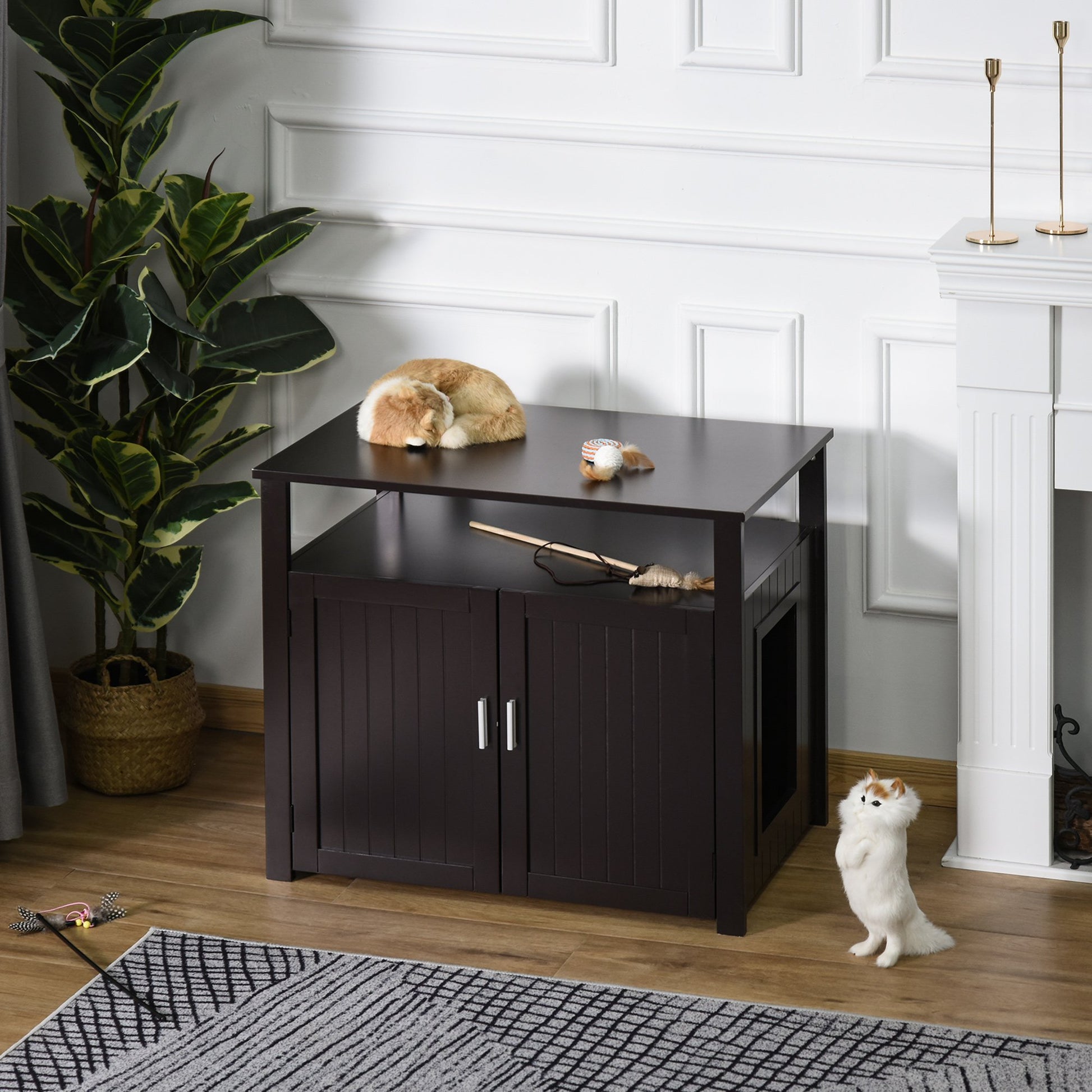 PawHut Wooden Cat Washroom Pet Litter Box Enclosure Kitten House Nightstand End Table